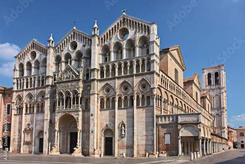 © ermess, Naklejka premium Ferrara, Emilia Romagna, Italy: the Romanesque catholic cathedral, landmark of the ancient Italian city