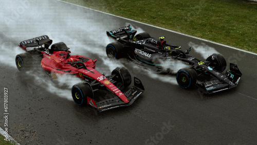 Obraz premium Ferrari and Mercedes F1 Car - 3D illustration, 28 jun, 2023, Melbourne,...