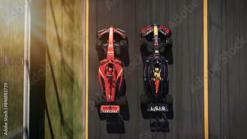 © miglagoa, Naklejka premium Ferrari and Red Bull F1 Cars 3D illustration, 11 jun, 2024, Sao Paulo, Brazil.