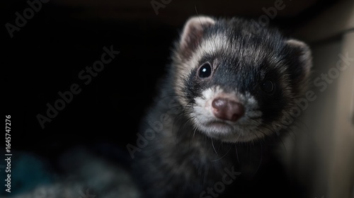© Thares2020, Fototapeta premium Ferret exploring its home environment with a curious alert expression