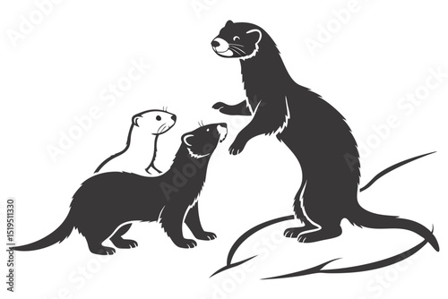 © soniya, Obraz premium Ferret family illustration in simple vector style with white background