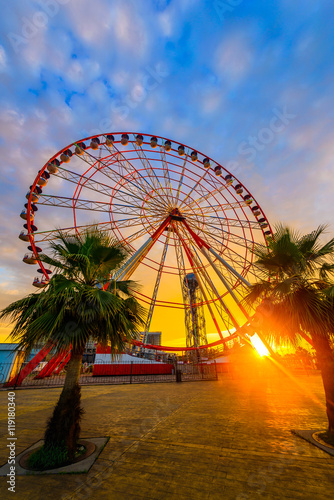 Fototapeta premium Ferris wheel on amazing sunset sky background