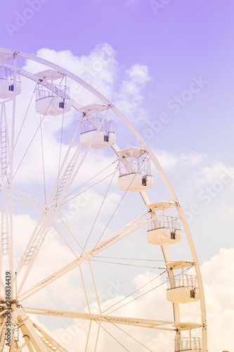 Fototapeta premium Ferris wheel on the colorful cloudy sky. Background concept of happy holidays time.