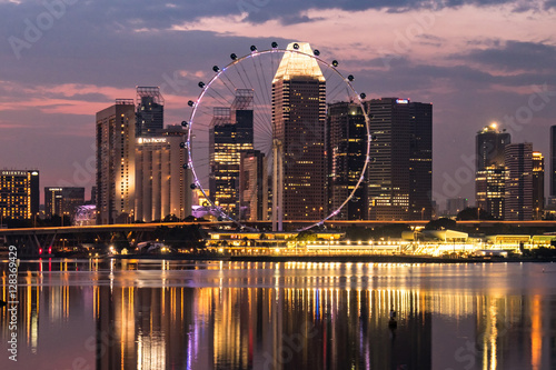 © Pattanasak Suksri, Naklejka premium Ferris wheel with office buildings reflection
