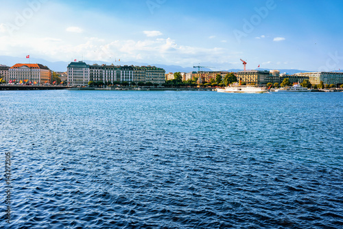 © Roman Babakin, Fototapeta premium Ferry in Geneva Lake Geneva Switzerland