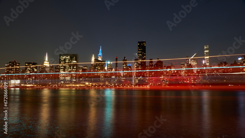 Obraz premium ferry passing by gantry park in front of Manhattan skyline