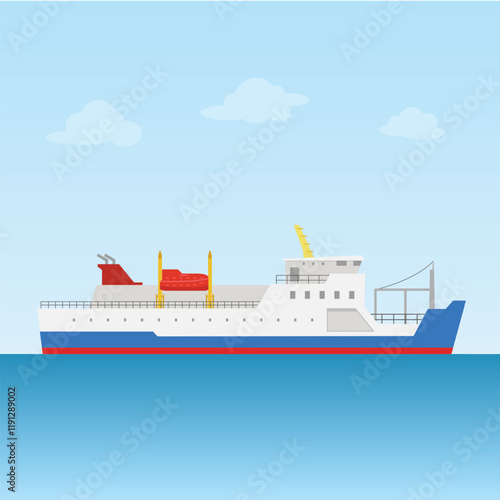 Fototapeta premium Ferry Ship Transportation on blue ocean flat design