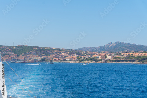 Fototapeta premium Ferry Wake and Distant Coast, Sardinian, La Maddalena, Italy