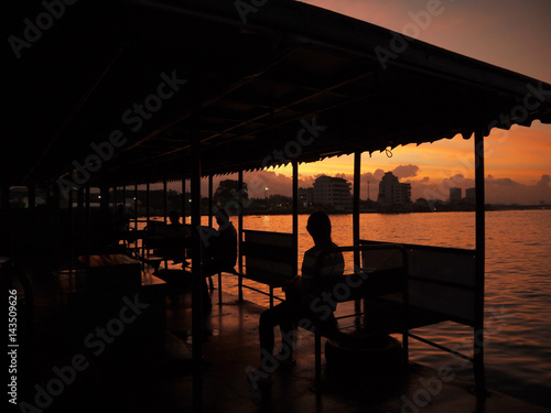 Fototapeta premium ferryboat thai silhouette sunrise