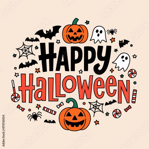 Naklejka premium Festival Halloween Typography with Spooky Elements