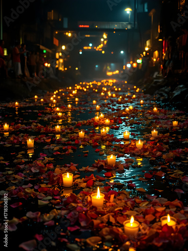 Obraz premium Festival of Lights with Candles on Water