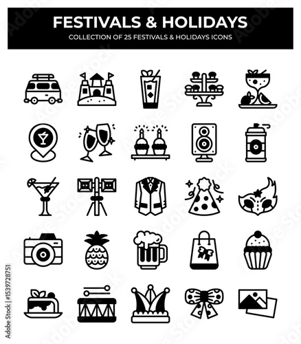 © Icon, Naklejka premium Festivals & Holidays. Collection of 25 Unique Icons