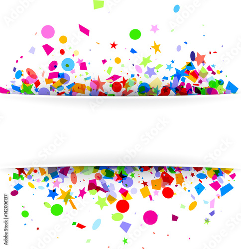 © Vjom, Fototapeta premium Festive background with colorful confetti.