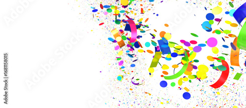 Fototapeta premium Festive background with colorful confetti and ribbons. Perfect for party...