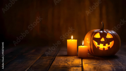 © DSimage, Obraz premium festive background with evil pumpkin for Halloween