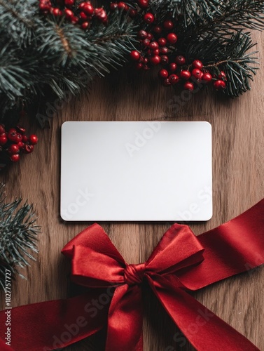 © Rawpixel.com, Naklejka premium Festive card with red ribbon.
