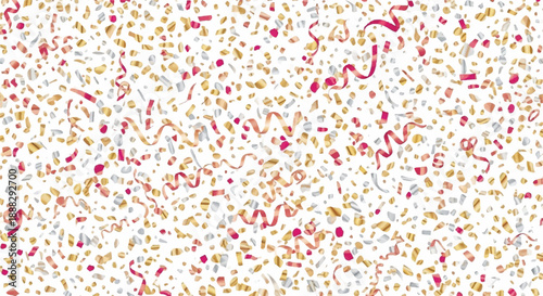 © Shura San, Obraz premium Festive Celebration Background with Pink and Gold Confetti and Streamers