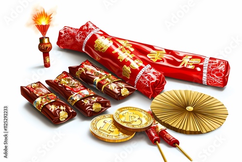 Fototapeta premium Festive Chinese New Year Celebration with Firecrackers and Coins