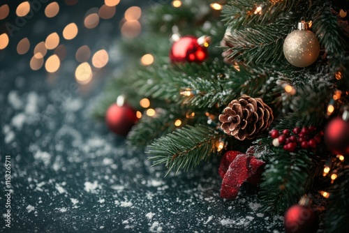 © zain, Naklejka premium Festive Christmas Background with Fir Tree for Holiday Designs and Decorations
