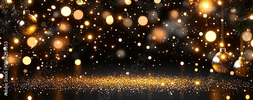 Naklejka premium Festive Christmas Background with Gold Ornaments and Sparkling Lights