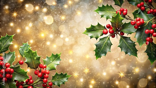 © anulak, Fototapeta premium Festive Christmas background with holly and lights