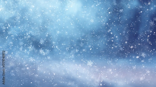 Fototapeta premium festive christmas blue backdrop with soft falling snow blue snow winter...