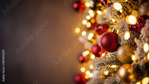 Fototapeta premium Festive Christmas Decorations Gold Ornaments Lights Holiday Background Winter Season Cheer