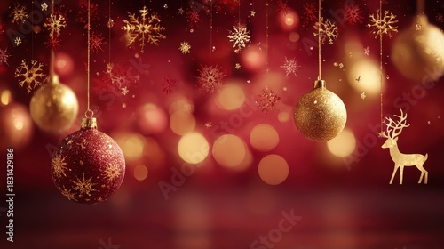 Naklejka premium Festive Christmas Decorations with Baubles and Reindeer