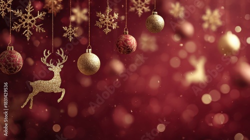 © Stock Photo Memory, Naklejka premium Festive Christmas Decorations with Baubles and Reindeer