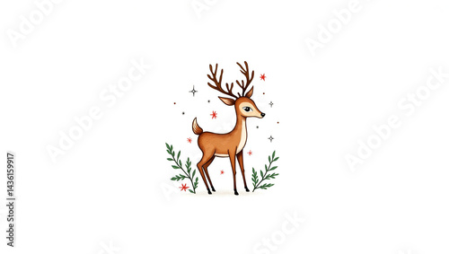 Fototapeta premium Festive Christmas deer illustration. True hand drawing, vector artwork
