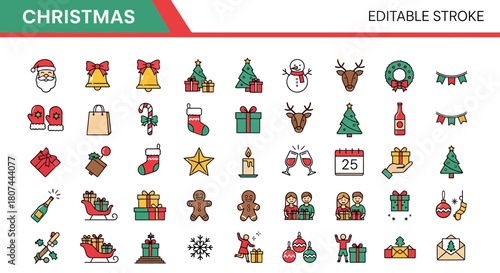 Naklejka premium Festive Christmas Icons A Colorful Collection of Holiday Symbols and Decorations for Seasonal Design