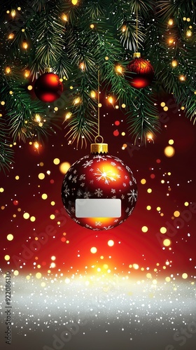 Fototapeta premium Festive Christmas Ornament with Snow and Lights