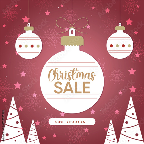 Naklejka premium Festive Christmas Sale Promotion with Ornaments and Stars