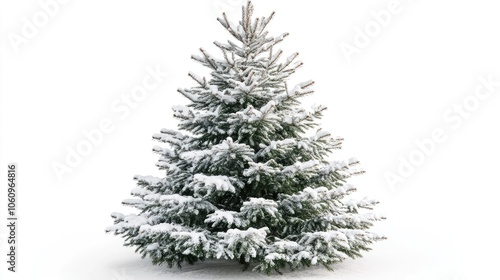 Fototapeta premium Festive Christmas tree with snowy branches on a white background, creating a...