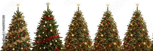 © Kaniz Fatema, Fototapeta premium Festive Christmas Trees: A vibrant display of decorated Christmas trees stands side by side, each adorned with colorful ornaments and twinkling lights.