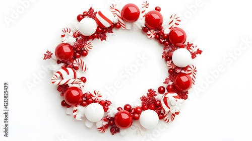 Obraz premium Festive Christmas Wreath Decorated With Red And White Ornaments