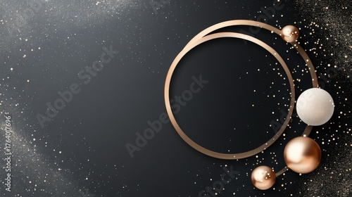Fototapeta premium Festive design with sparkling balls and geometric shapes on a dark starry...