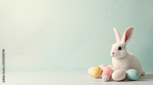 © Dmitrii, Obraz premium Festive Easter Bunny with painted Easter Eggs and a Blank Space for Custom Text