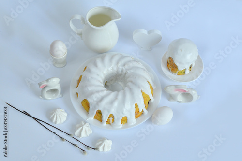Fototapeta premium Festive Easter spring composition with pussy willow branches with catkins and...