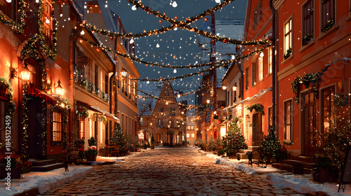 Obraz premium Festive European Christmas Street
