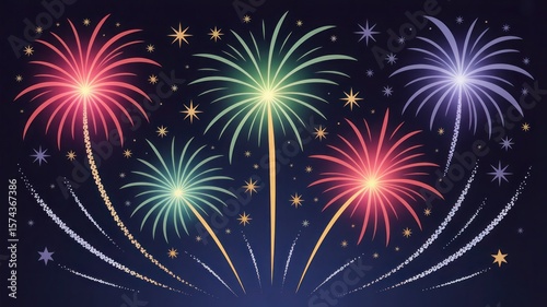 Naklejka premium Festive fireworks display illuminating the dark night sky with sparkling stars
