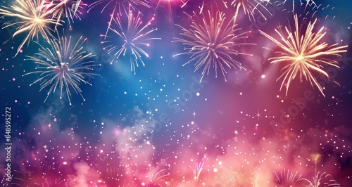 Naklejka premium Festive Fireworks Display in the Night Sky