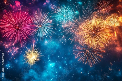 © Crestiva Creative, Fototapeta premium Festive Fireworks Night Background Design1