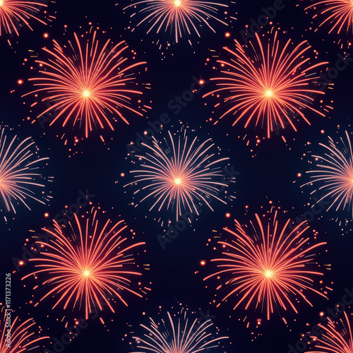 © Narong, Fototapeta premium Festive Fireworks Seamless Pattern - Seamless patterns