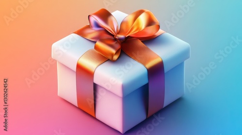 © Ummeya, Fototapeta premium Festive gift box with orange ribbon perfect for celebrations.