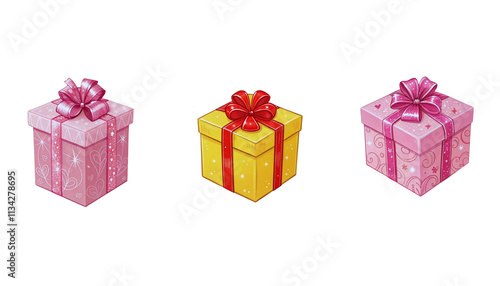 © AMORNRAT, Obraz premium Festive gift boxes Illustration.