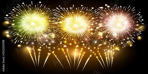 Naklejka premium Festive Golden Fireworks Display New Year Celebration Night Sky