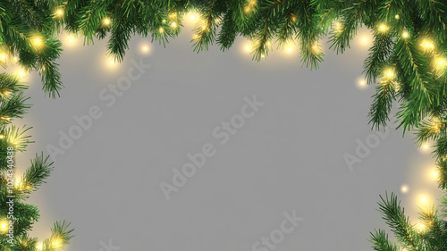 Obraz premium Festive green pine branches adorned with twinkling lights during Christmas...