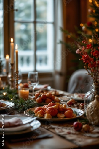 Fototapeta premium Festive Holiday Dinner Table Setting