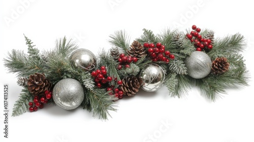 Fototapeta premium Festive Holiday Garland with Ornaments and Pine Cones